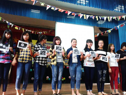 Ảnh : Các nữ sinh nhiệt tình trả lời các câu hỏi của BTC.