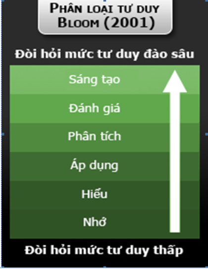 Thang đo tư duy Bloom (2001) chỉ ra rằng “nhớ, hiểu” kiến thức là những hoạt động đòi hỏi mức tư duy thấp nhất; còn việc áp dụng, phân tích và sáng tạo dựa trên kiến thức tiếp nhận được chính là hoạt động đòi hỏi mức tư duy đào sâu hơn.