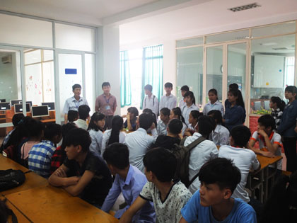 Đón tiếp và làm việc với đoàn có thày giáo Phạm Chí Cường-Phó bí thư Đảng uỷ, Phó hiệu trưởng nhà trường cùng các thày giáo thuộc trung tâm sát hạch và tư vấn tuyển sinh. Thày giáo Phạm Chí cường đã thay mặt Đảng uỷ và Ban giám hiệu nhà trường giới thiệu những nét chung nhất về các ngành, nghề mà nhà trường đã và đang đào tạo đồng thời tư vấn hướng nghiệp cho các em học sinh nên lựa chọn cho mình một nghề yêu thích sau khi hoàn tất chương trình phổ thông.