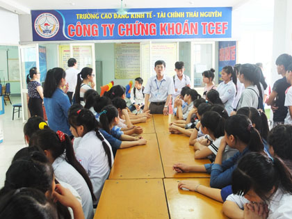 Ảnh : Thày giáo Phạm Chí Cường giới thiệu về trường CĐ Kinh tế-Tài chính Thái Nguyên.