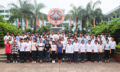 Ảnh : Đoàn chụp ảnh lưu niệm tại đài Lô-gô của trường.