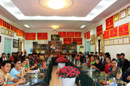 Đặc biệt cùng đi với đoàn còn có các bậc phụ huynh của 43 tân sinh viên sang nhập học trong năm học này. Đón tiếp và làm việc với đoàn, về phia nhà trường có đồng chí Nguyễn Ngọc Sáng-Phó bí thư Đảng uỷ, Phó hiệu trưởng, các đồng chí lãnh đạo khoa Quốc tế, phòng Công tác HSSV và Ban quản lý khu nội trú. Trước đó đoàn đã được đồng chí Nguyên Ngọc Sáng dẫn đi thăm cơ sở vật chất phục vụ đào tạo và cảnh quan trong khuôn viên nhà trường.