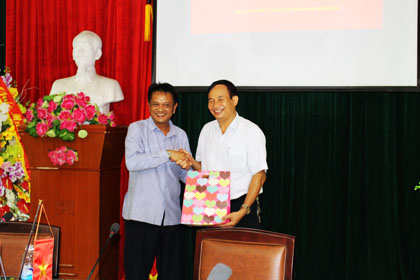Ảnh : Đồng chí Nguyễn Công Dương-Bí thư Đảng uỷ, Hiệu trưởng nhà trường và đồng chí Bun Pon-Phó giám đốc Sở.