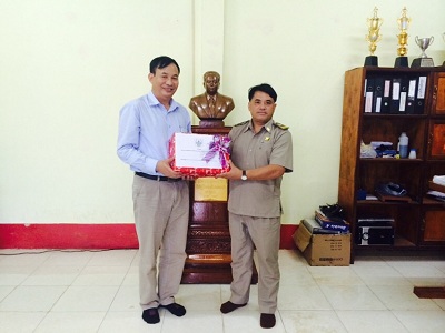 Trao quà lưu niệm cho Sở GD & TT tỉnh Bó Kẹo