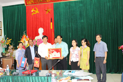 Ảnh : Đoàn trao quà lưu niệm cho nhà trường.