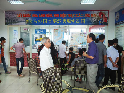 Sau khi nghe tư vấn, đoàn đã được thày giáo Nguyễn Ngọc Sáng cùng các cộng sự đẫn đi thăm cơ sở vật chất của nhà trường như ký túc xá, nhà ăn sinh viên, thư viện, các trung tâm đào tạo ngoại ngữ, đào tạo nghề…