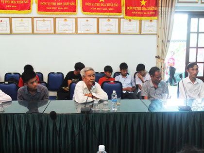 Tiếp đón đoàn tại nhà truyền thống của nhà trường, thày giáo Nguyễn Ngọc Sáng-Phó bí thư Đảng uỷ, Phó hiệu trưởng đã trực tiếp giới thiệu về công tác đào tạo của nhà trường, tư vấn hướng nghiệp cho học sinh và giải đáp những thắc mắc của các bậc phụ huynh học sinh về đối tượng, các chế độ mà học sinh được hưởng khi theo học tại trường. Đặc biệt trong đoàn đến thăm không chỉ có các bậc phụ huynh học sinh mà còn có cả “nội tổ phụ” (ông nội) dẫn theo “nội tôn” (chấu nội), điều đó chứng tỏ sự quan tâm của mọi giới đến vấn đề định hướng nghề nghiệp cho tương lai của các con, cháu trong giai đoạn hiện nay.