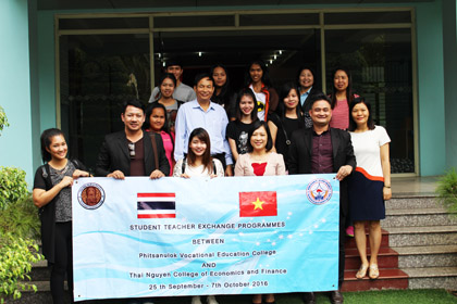 Theo chương trình hợp tác đào tạo nghề giữa trường CĐ Kinh tế-Tài chính Thái Nguyên và các trường CĐ nghề của Vương quốc Thái Lan đã được ký kết, hai trường CĐ nghề Nongkhai và Phitsanulok là những trường đầu tiên đưa giáo viên và sinh viên tới trường CĐ Kinh tê-Tài chính thái Nguyên theo chương trình trao đổi giáo viên và sinh vên để cùng nhau nghiên cứu, học tập nhằm thắt chặt quan hệ hợp tác giữa các trường. Lần này các trường bạn đưa sang 5 giáo viên và 7 sinh viên thuộc các chuyên ngành Kế toán, CNTT và Khách sạn. Trong khoảng thời gian 2 tuần, các giáo viên và sinh viên bạn sẽ được nghiên cứu, học tập tại các khoa CNTT, Kế toán, Quản trị kinh doanh và Du lịch của nhà trường.