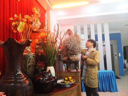 Ảnh : Giáo sư Park Jin Wook thắp hương trước tượng Bác Hồ.