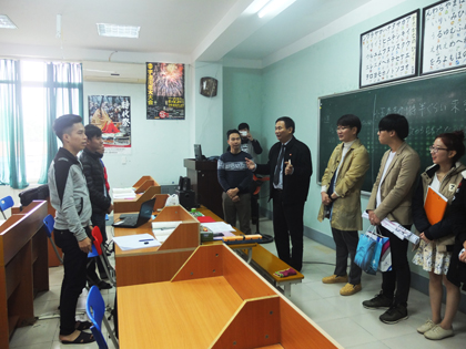 Ảnh : Đoàn thăm lớp học tiếng Nhật tại trung tâm tiếng Nhật của trường.