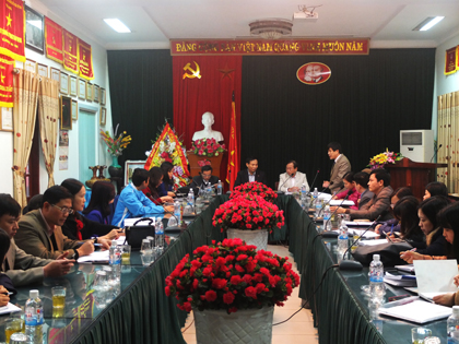Ảnh : Đồng chí Nguyễn Công Dương-Bí thư Đảng uỷ, hiệu trưởng nhà trường phát biểu trong hội nghị.
