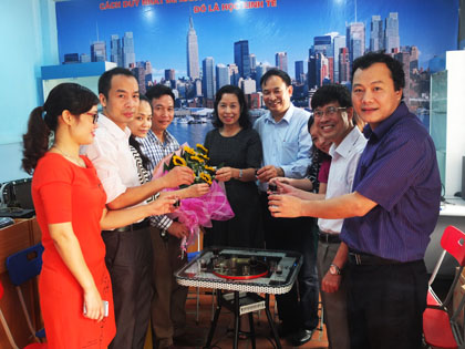 Ảnh : Lãnh đạo nhà trường, lãnh đạo các đơn vị chúc mừng buổi khai trương văn phòng.
