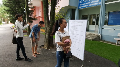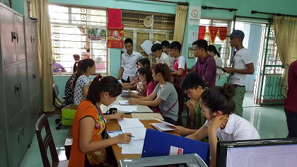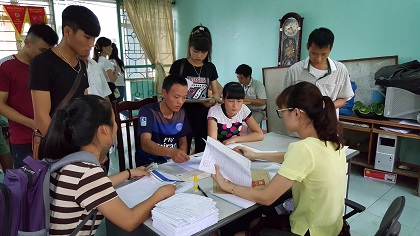 Tân sinh viên vào trong phòng làm các thủ tục nhập học
