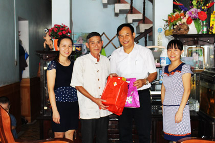 Ảnh : Đồng chí Nguyễn Ngọc Sáng thăm và tặng quà một số gia đình chính sách tại TP Thái Nguyên.