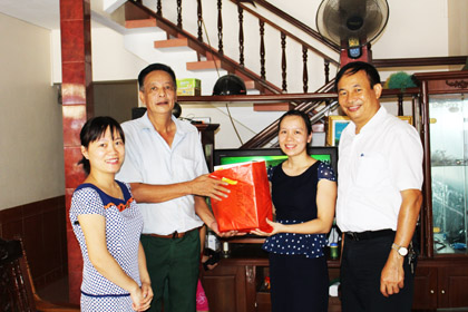 Ảnh : Đồng chí Nguyễn Ngọc Sáng-Phó bí thư Đảng ủy, Phó hiệu trưởng nhà trường thăm và tặng quà cho thương binh Nguyễn Quang Trung-nguyên giảng viên của trường.