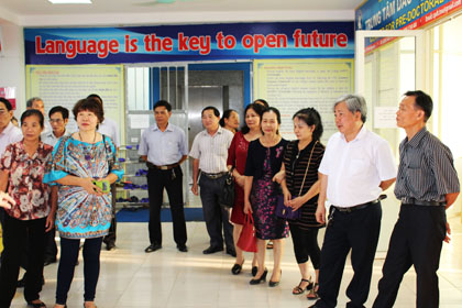 Ảnh : Đoàn thăm trung tâm dạy ngoại ngữ.