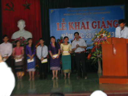 Các em lưu sinh viên Lào nhận học bổng của các nhà tài trợ