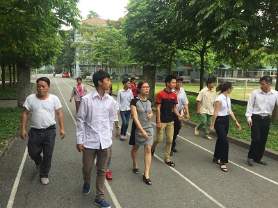 Các thầy cô giáo trong Khoa Quốc tế đưa đoàn đi tham quan cơ sở vật chất của Nhà trường