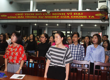 Ảnh : Toàn thể lãnh đạo, cán bộ, giảng viên và người lao động trang nghiêm dự lễ chào cờ.