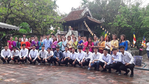 Ảnh. Lãnh đạo Phòng Công tác HSSV, GCVN và các em lưu HS Lào K6 tại Chùa một cột thuộc khu di tích lăng Chủ tịch Hồ Chí Minh