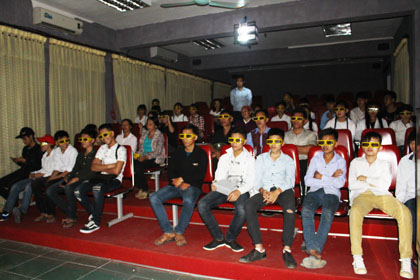 Ảnh : Các em học sinh xem phim 3D tại phòng chiếu phim của nhà trường.
