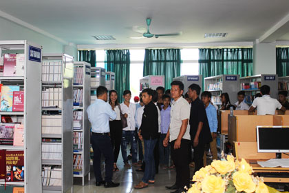 Ảnh : Các đoàn thăm thư viện và phòng đọc tự chọn.