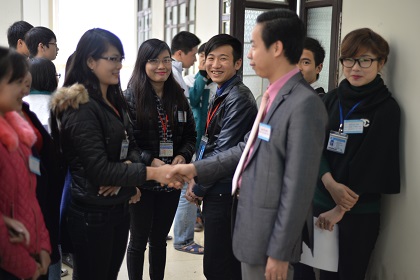 Ảnh: Các thí sinh dự thi chụp ảnh với ban tổ chức
