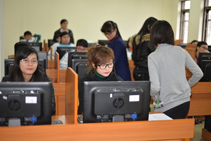 Ảnh: Thí sinh dự thi trên hệ thống chuẩn của Microsoft