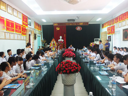 Thày và trò trường PTDT nội trú THCS Nguyễn Bỉnh Khiêm huyện Võ Nhai thăm và làm việc với nhà trường.