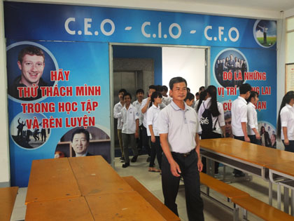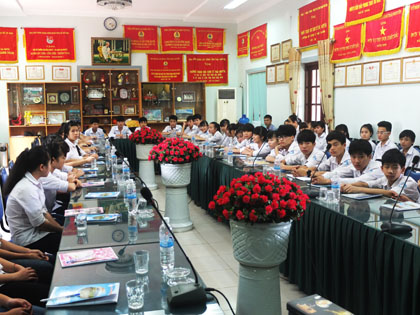 Sau khi tham quan cơ sở vật chất phục vụ đào tạo của nhà trường như : Trung tâm thông tin-thư viện, các phòng thực hành máy tính, các trung tâm ngoại ngữ, các trung tâm thực hành nghiệp vụ kế toán, tài chính, khu nhà ở HSSV, bếp ăn sinh viên…đoàn thăm quan đã được thày giáo Nguyễn Công Dương và các cán bộ, giảng viên thuộc trung tâm tư vấn tuyển sinh giới thiệu về các ngành, nghề trường đang đào tạo để sau khi hoàn thành chương trình THCS các em có thể tham gia dự tuyển vào học tập tại trường.