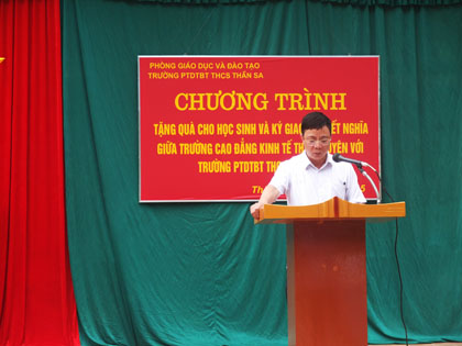 Tiếp tục xúc tiến chương trình " Chung tay hỗ trợ phát triển giáo dục vùng cao", ngày 18-11-2015, đoàn công tác trường CĐ Kinh tế-Tài chính Thái Nguyên đã đến điểm trường TH dân tộc bán trú PTCS xã Thần Sa, huyện Võ Nhai tỉnh Thái Nguyên tao quà và ký giao ước kết nghĩa giữa hai trường.