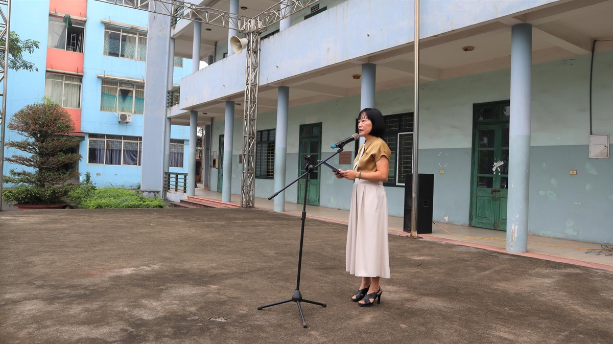 Ảnh: Cô Nguyễn Thị Thùy Dương - Trưởng phòng Hợp tác quốc tế và Thông tin - Thư viện đọc báo cáo tổng kết và công bố trao giải Hội thi