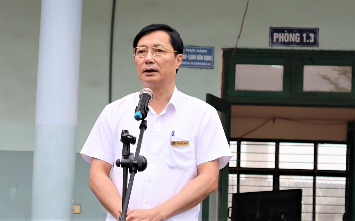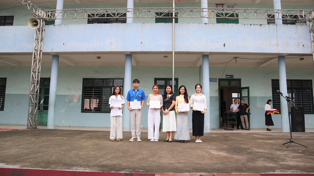 Ảnh: Thầy Trần Danh Trung - Hiệu trưởng Nhà trường trao giải Nhất cho các em học sinh, sinh viên đạt giải