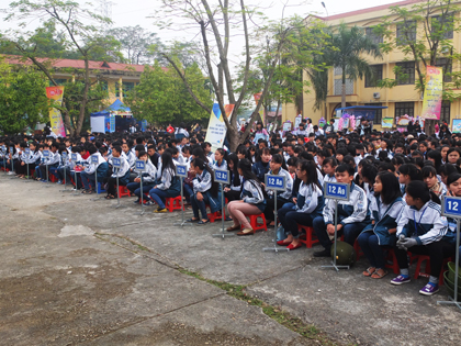 Ảnh : Học sinh trường THPT Ngô Quyền nô nức tham gia ngày hội đọc sách.