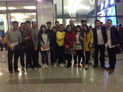 Các học viên chụp ảnh lưu niệm tại Sân bay Quốc tế Nội Bài