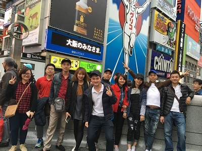 Tập thể du học sinh Khoá 4 chụp ảnh lưu niệm tại đường phố Osaka