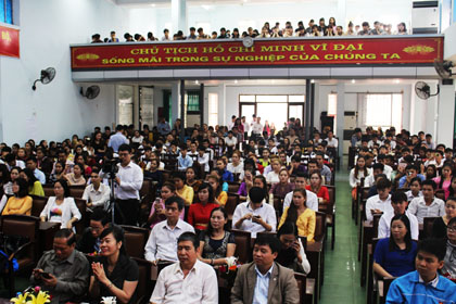 Ảnh : Các vị đại biểu cùng các lưu sinh viên dự mít tinh tại hội trường lớn.