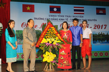 Đến dự buổi mít tinh có đồng chí Nguyễn Quang Huân-Phó trưởng phòng đoàn thể ban dân vận tỉnh uỷ Thái Nguyên, đồng chí Nguyễn Doãn Kình-chủ tịch hội hữu nghị Việt-Lào tỉnh Thái Nguyên, đồng chí Hoàng Sơn-Phó bí thư thường trực huyện uỷ huyện Đinh Hoá, đồng chí Đặng Thị Kim Oanh-Phó giám đốc Sở Ngoại vụ tỉnh Thái Nguyên, đồng chí thượng tá Dương Đức Thắng-Phó trưởng phòng an ninh chính trị nội bộ CA tỉnh Thái Nguyên cùng các đồng chí lãnh đạo các tổ chức chính trị, đoàn thể của thành phố thái nguyên. Về phía nhà trường có các đồng chí Phạm Chí Cường-Phó bí thư Đảng uỷ, phó hiệu trưởng, đồng chí Lê Kim Anh-UV ban thường vụ, phó hiệu trưởng, các đồng chí lãnh đạo các phòng, khoa, trung tâm cùng toàn thể các lưu sinh viên của ba nước bạn Lào, Thái Lan, Campuchia hiện đang theo học tại trường. Cũng tại buổi mít tinh này, các đồng chí đại biểu đã tặng nhà trường những bó hoa tươi thắm, bày tỏ sự quan tâm sâu sắc tới sự nghiệp đào tạo của nhà trường nói chung và sự mở rộng hợp tác đào tạo với các nước trong khu vực ASEAN nói riêng. Nhân dịp Tết cổ truyền của các nước Lào, Thái Lan và Campuchia, nhà trường đã tuyên dương, trao thưởng cho các lưu sinh viên đạt kết quả xuất sắc trong học tập và rèn luyện, trao thưởng cho các lớp sinh viên có thành tích cao trong các hoạt động TDTT vừa qua. Nhìn chung buổi mít tinh đã diễn ra trong không khí đầm ấm, vui tươi tràn đầy tình hữu nghị giữa các dân tộc Việt Nam, Lào, Thái Lan và Campuchia, động viên và khích lệ các lưu sinh viên trong những ngày đón xuân xa xứ.