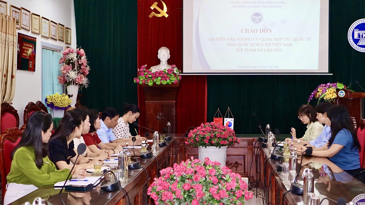 Ngày 15/4/2026, Trường Cao đẳng Thái Nguyên đã có buổi tiếp đón và làm việc với đoàn công tác đại diện Văn phòng Cơ quan Hợp tác Quốc tế Hàn Quốc (KOICA) tại Việt Nam nhằm thảo luận về công tác hoạt động tình nguyện của tình nguyện viên KOICA đang công tác tại Nhà trường.