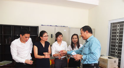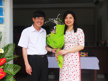 Anh : Lãnh đạo nhà trường chúc mừng và chỉ đạo hoạt động của bưu cục.