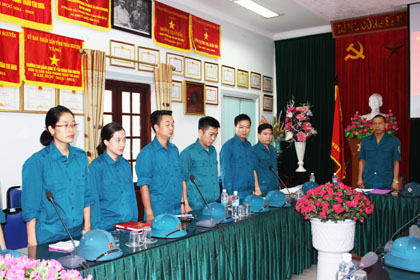 Ảnh : Trung đội tự vệ nhà trường tập trung tại buổi khai mạc.
