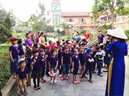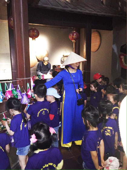 Ảnh : Học sinh trường mầm non Tài Hoa chụp ảnh lưu niệm trước của bảo tàng.
