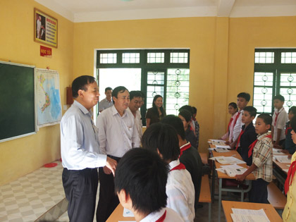 Ảnh : Đoàn công tác thị sát khu nội trú của trường THCS Văn Lăng